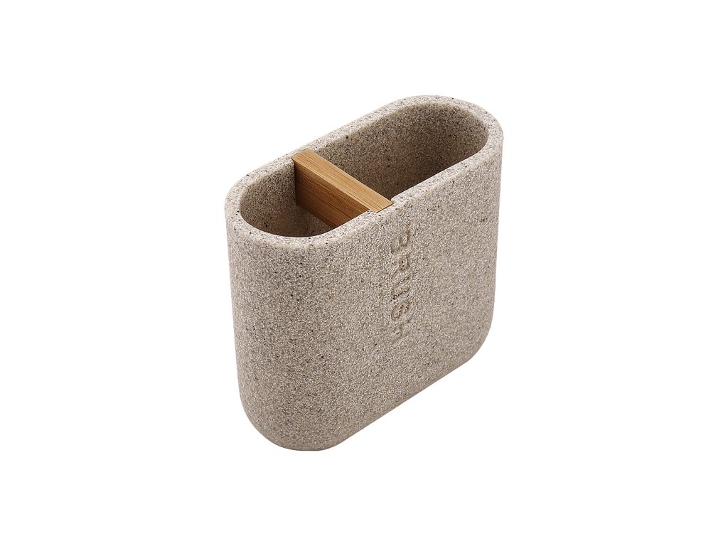 Dóza na kartáčky Dóza na kartáčky. Barva pískově béžová. Materiál polyresin, bambusové dřevo.Doplňkové parametry