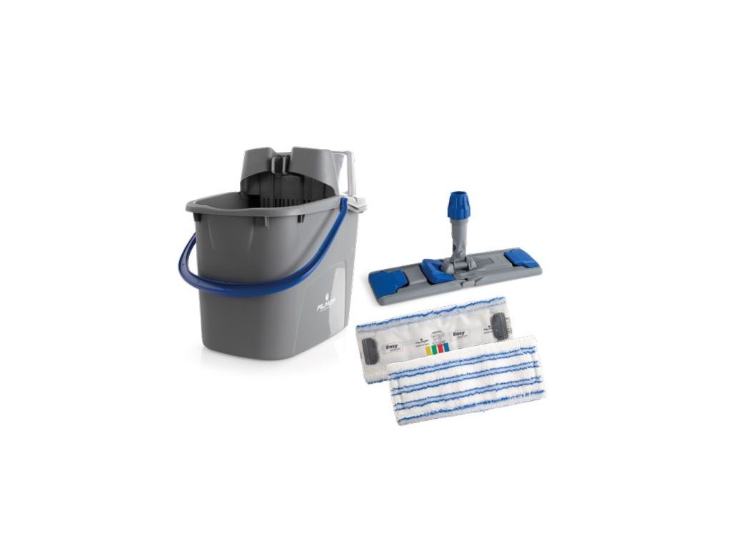Vědro se spodním ochranným okrajem a ergonomickým uchopením pro snazší vyprázdnění. Speciálně tvarovaný ždímač pro snazší stlačení mopu. Držák mopu umožňuje automatické upevnění a uvolnění mopu, aby se zabránilo ohýbání obsluhy a přímému kontaktu se špinavým mopem. Mop z mikrovlákna s klopami pro snadné, rychlé a bezpečné upevnění mopu. Ideální pro všechny hladké podlahy, střední stupeň znečištění.Doplňkové parametry