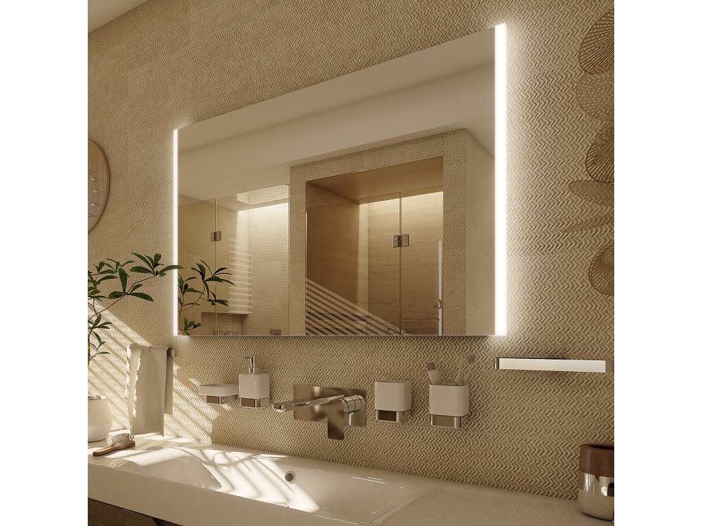 Zrcadlo do koupelny 80x70 s osvětlením po stranách je skvělým doplňkem do koupelny. Zrcadla do koupelny NIMCO vynikají kvalitním zpracováním a moderním designem. Svícení za použití akrylátového skla plexiglass. Konstrukce je z hliníkového rámu 32x19 mm, sklo zrcadla o tloušťce 5 mm. Zrcadlo lze uchytit horizontálně a vertikálně. Připojení 220-240 V. Ochrana IP 44. Bez vypínače. Zapojení do el. rozvodu a zapínání přes vypínač světel v místnosti. LED čipy s vysokým výkonem. Barevná Teplota denní bílá – jasné polední světlo. Životnost LED diod je až 50 000 hodin. Součástí zrcadla je kabelová spojka, IP 44. Koupelnové podsvícené LED zrcadlo Životnost diod až 50 000 hodin Příkon 21 W Barevná teplota 6500 K 1512 LumenDoplňkové parametry