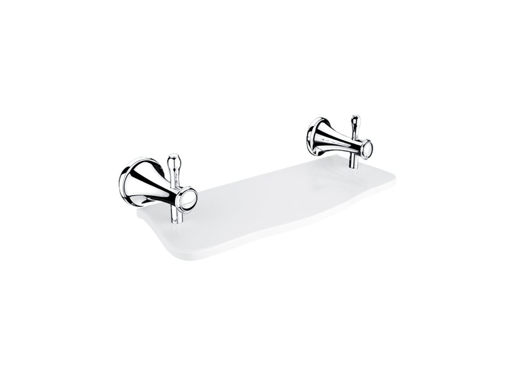 Police, 30 cm Police z bílého umělého kamene. Délka 30 cm. Úchyty mosaz s povrchovou úpravou chrom.