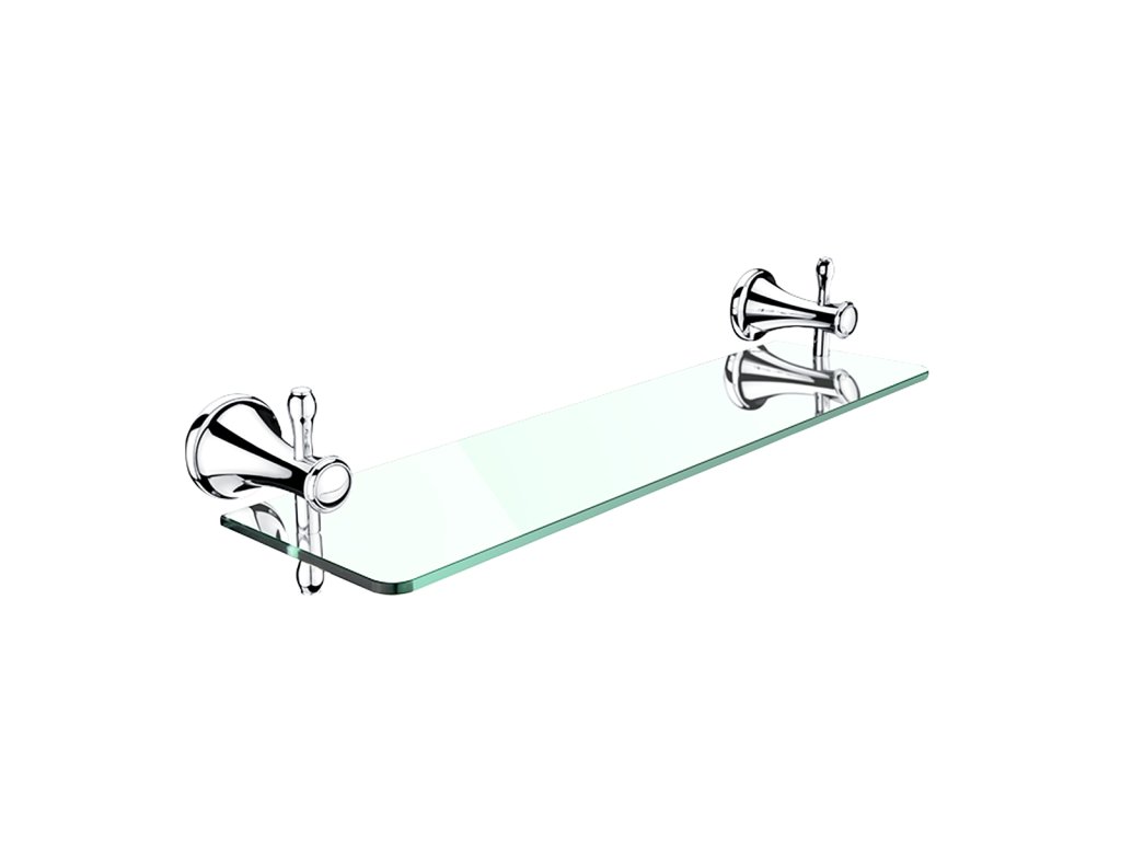 Police bez ohrádky, 50 cm Police. Sklo čiré. Délka 50 cm. Úchyty mosaz s povrchovou úpravou chrom.