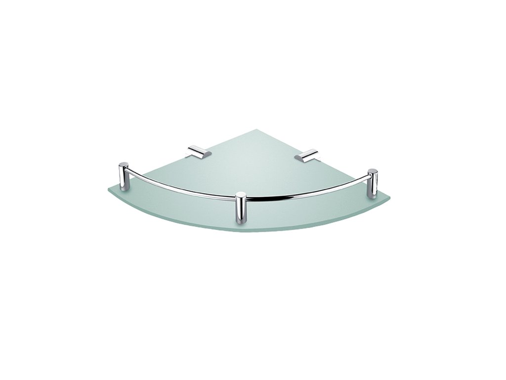 Police rohová s ohrádkou Rohová police s matovaným sklem s ohrádkou.