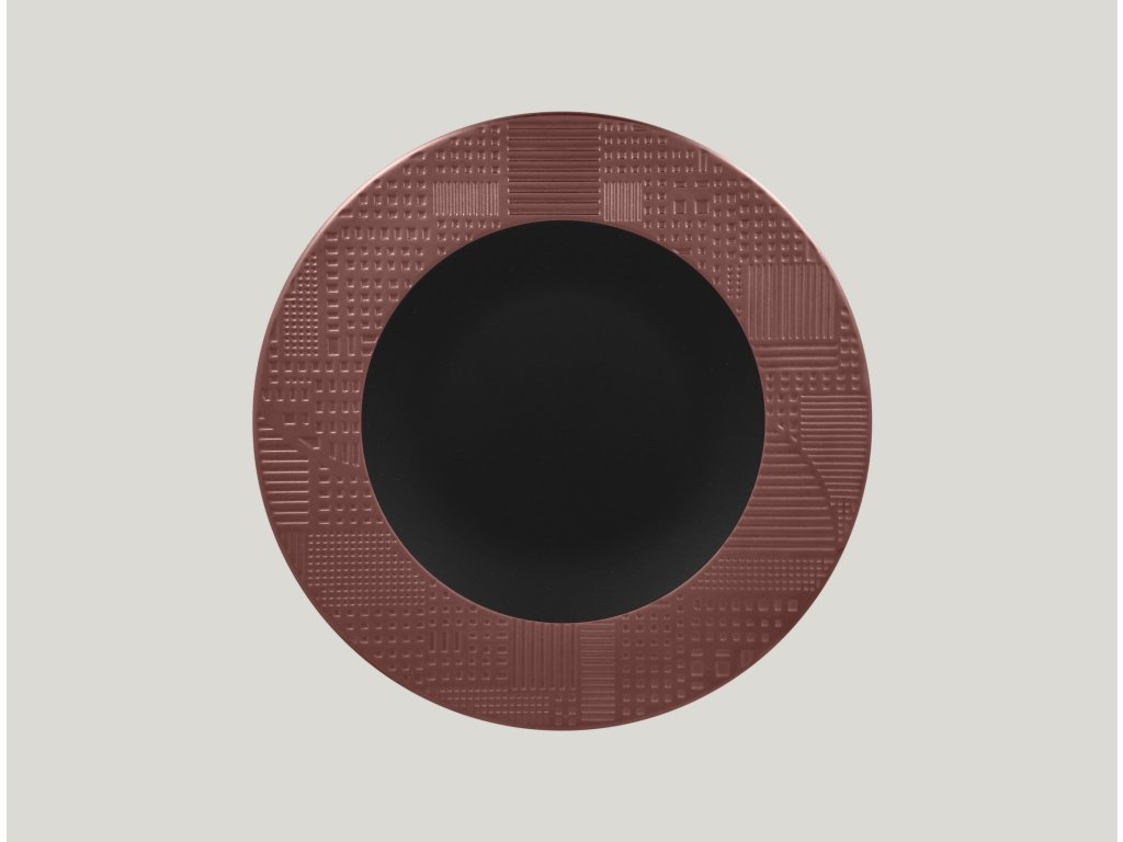 Porcelánový mělký talíř s reliéfem v bronzovém dekoru a tajemně černým středem dodává vkusnou a elegantní atmosféru. Vaše hosty ohromí, zaujme a zpříjemní jim gastronomický zážitek. Prvotřídní porcelán zaručuje kromě svého atraktivního designu také svou odolnost a kvalitní zpracování.Mělký talíř
