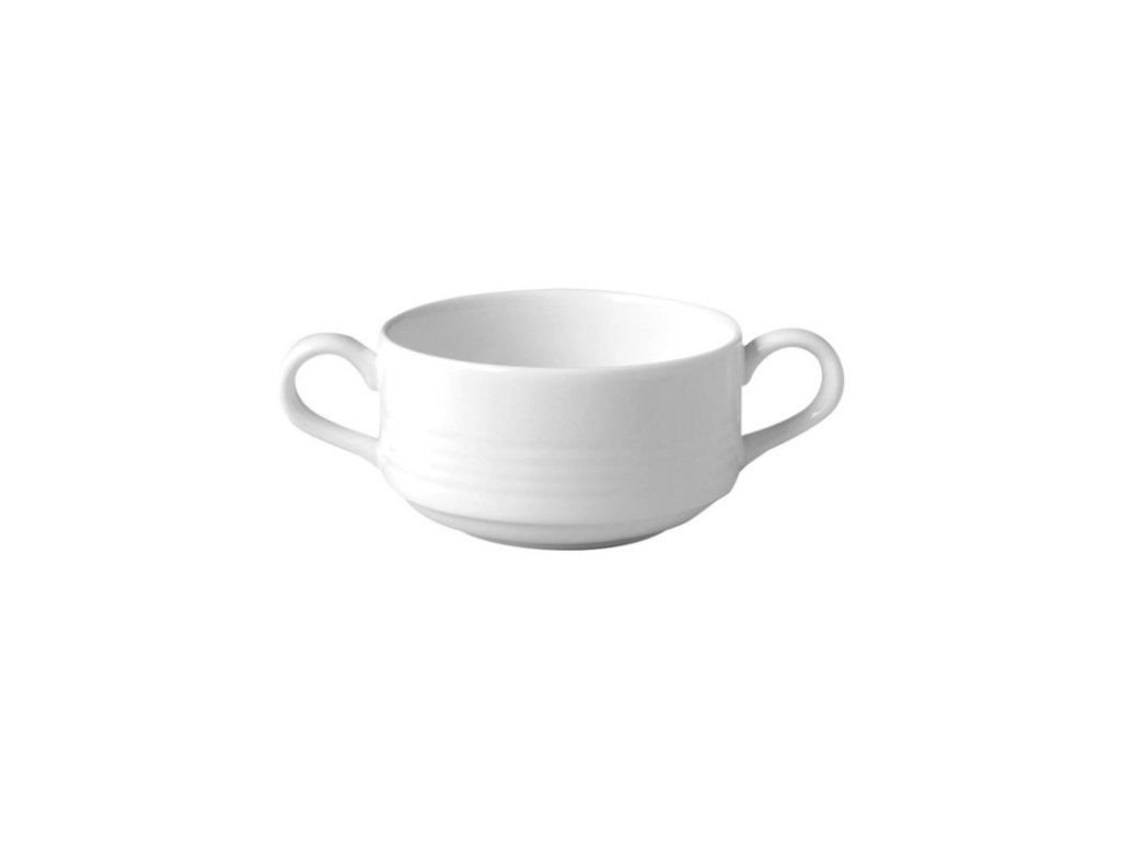 Šálek na polévku poznáte na první pohled podle elegantního designu doplněného o kruhové linky. Vzhled ale není jedinou jeho předností. Další výhodu představuje i vysoká odolnost, která zaručuje dlouhou životnost. Proto se šálek perfektně hodí do rušných provozů, kde se dveře nezavřou. Jeho dvě ucha usnadňují servírování.Šálek na polévku 18 cl
