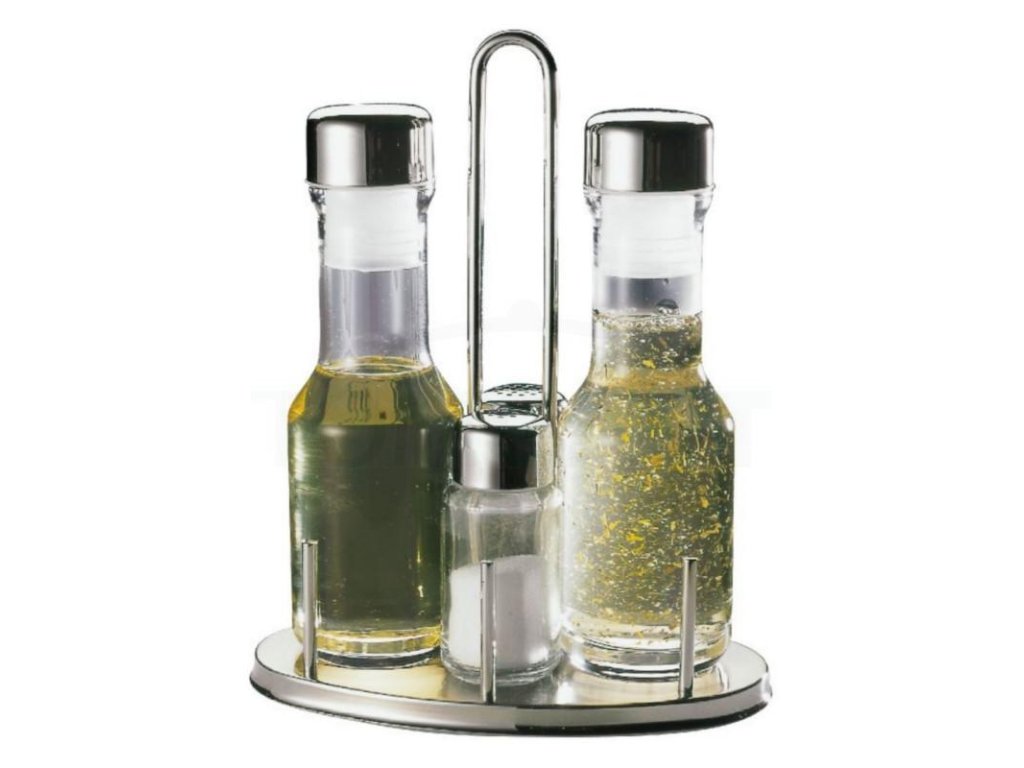 Solnička s pepřenkou jsou nezbytnou součástí každého gastro podniku a hodí se jak do kuchyně, tak na jídelní stoly pro vaše hosty. K tomu skvěle padne také olej a ocet, aby vaši hosté měli větší rozmanitost. Vyrábí se z kvalitního skla doplněného o nerezovou ocel a polyethylen a svým tvarem skvěle padnou do ruky a dobře se s nimi manipuluje.Solnička s olejem a octem