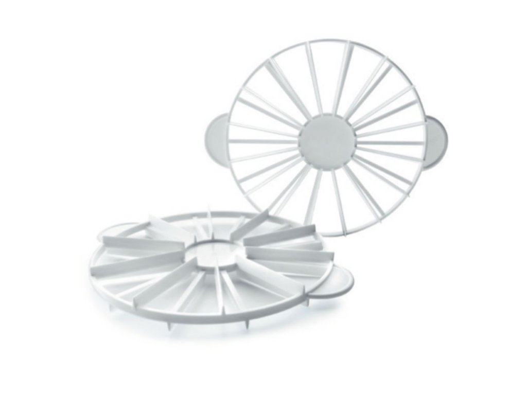 Značkovač na dorty vám poslouží k elegantnímu a jednoduchému označení dílů na dortu. Stačí ho přiložit a jemně otisknout. Pak ho odložíte a na povrchu se objeví značky, podle kterých pak dort nakrájíte. Navíc je v oboustranném provedení s ergonomickými rukojeťmi a dortové díly nakrájí na rovnoměrné plátky.Značkovač na dorty 14–16 dílků